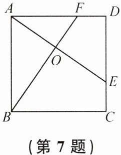 7. 如图,点 E,F 分别是正方形 ABCD 边 CD,AD 上的点,且 CE = DF,AE,BF 相交于点 O,给出下列结论:①AE = BF;②AE ⊥ BF;③AO = OE;$④S_{△AOB} = S_{四边形DEOF}.$其中正确的有(
