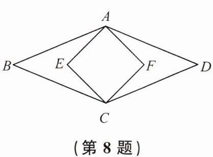 8. 如图,菱形 ABCD 的面积为$ 120 cm^2,$正方形 AECF 的面积为$ 50 cm^2,$则菱形 ABCD 的边长为