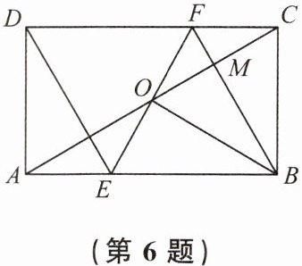 6. 如图,在矩形 $ABCD$ 中,点 $O$ 是 $AC$ 的中点,过点 $O$ 的直线分别与 $AB$,$CD$ 交于点 $E$,$F$,连接 $BF$ 交 $AC$ 于点 $M$,连接 $DE$,$BO$. 若 $\angle COB = 60^{\circ}$,$FO = FC$,有下列结论: