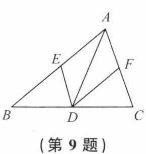 9. 如图,点 $D$ 在 $\triangle ABC$ 的边 $BC$ 上,$DE // AC$ 交 $AB$ 于点 $E$,$DF // AB$ 交 $AC$ 于点 $F$. 若添加条件