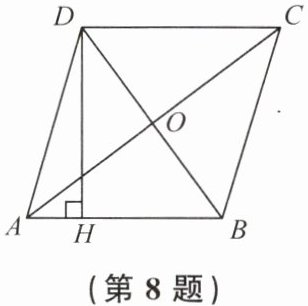 8. 如图,在菱形 $ABCD$ 中,对角线 $AC$ 与 $BD$ 相交于点 $O$,且 $AC = 8$,$BD = 6$,则菱形 $ABCD$ 的高 $DH = $