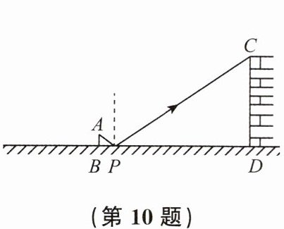 10. 数学兴趣小组的同学们来到宝安区海淀广场,设计用手电筒来测量广场附近某大厦$CD$的高度,如图,点$P$处放一水平的平面镜. 光线从点$A出发经平面镜反射后刚好射到大厦CD的顶端C$处,已知$AB\perp BD$,$CD\perp BD$,且测得$AB = 1$ m,$BP = 1.5$ m,$PD = 48$ m,那么该大厦的高度约为