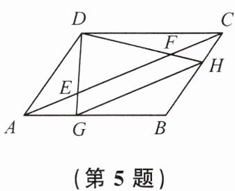 5. 如图,$E$,$F是□ ABCD对角线AC$上的两点,$AE = CF = \frac{1}{4}AC$. 连接$DE$,$DF$并延长,分别交$AB$,$BC于点G$,$H$,连接$GH$,则$\frac{S_{\triangle ADG}}{S_{\triangle BGH}}$的值为(