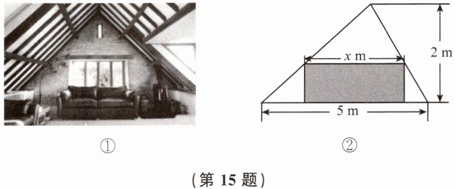 15. (本题10分)学校计划对校史馆进行修缮,在校史馆阁楼屋顶上开一窗户,设窗户的一边长为$x$ m.