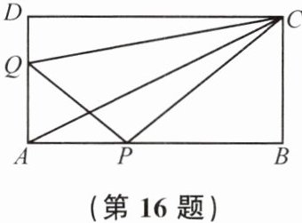 16. (本题10分)如图,在矩形$ABCD$中,$AB = 12$ cm,$BC = 6$ cm,点$P沿AB边从点A开始向点B$以2 cm/s的速度移动,点$Q沿DA边从点D开始向点A$以1 cm/s的速度移动. 如果$P$,$Q$同时出发,用$t$(s)表示移动的时间$(0\leq t\leq 6)$.