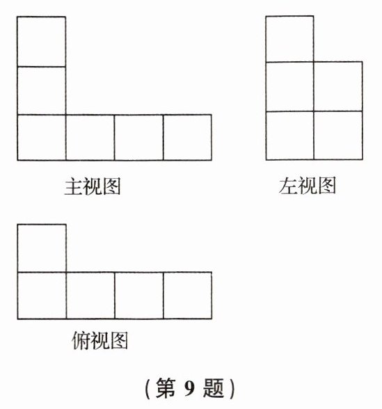 9. 桌上摆着一个由若干个相同小正方体组成的几何体,其三视图如图所示,则组成此几何体需要的正方体个数是