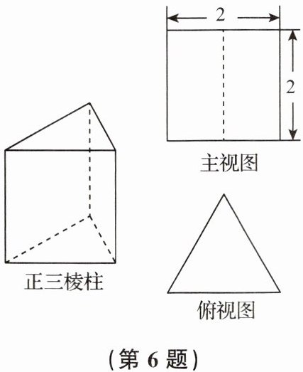 6. 如图,这是一个底面为等边三角形的正三棱柱和它的主视图、俯视图,则它的左视图的面积是(