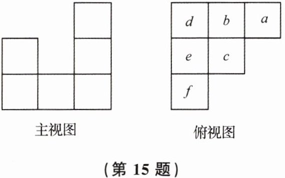 15.(本题10分)用小正方体搭一个几何体,使它的主视图和俯视图如图所示,俯视图中小正方形中的字母表示在该位置上小正方体的个数,请解答下列问题: