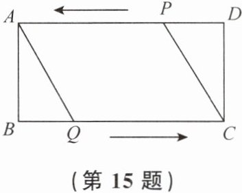 15.(本题 15 分)如图,在矩形 $ABCD$ 中,$AB = 4 cm$,$BC = 8 cm$,点 $P$ 从点 $D$ 出发向点 $A$ 运动,同时点 $Q$ 从点 $B$ 出发向点 $C$ 运动,点 $P$,$Q$ 的速度都是 $1 cm/s$.