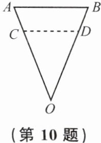 10. 某机场常用一种圆锥形直饮水杯,这种设计是为了方便清洁和节省存储空间.小明画出这种纸杯的轴截面图如图所示,其中点$O$为杯底顶点,$AB,CD$分别表示杯口、水面,$OA= OB,CD// AB$.若杯中水的高度是杯子高度的80%,则水的体积与杯子容积的比最接近于(