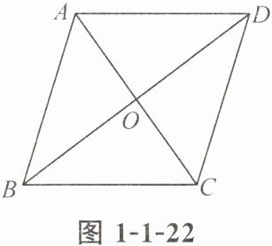 1. 如图 1-1-22,四边形 ABCD 的对角线相交于点 O,且点 O 是 BD 的中点,若 AB = AD = 5,BD = 8,∠ABD = ∠CDB,则四边形 ABCD 的面积为(