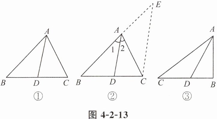 证明:如图 4-2-13 ②,过点 C 作 CE//DA,交 BA 的延长线于点 E……