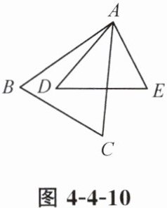 1. 如图 4 - 4 - 10,在△ABC 与△ADE 中,∠BAC = ∠D,要使△ABC 与△ADE 相似,还需要满足下列条件中的(