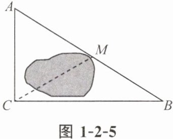 3. 如图 1-2-5,公路 $AC$,$BC$ 互相垂直,公路 $AB$ 的中点 $M$ 与点 $C$ 被湖隔开,若测得 $AB$ 的长为 $4.8\mathrm{km}$,则 $M$,$C$ 两点间的距离为