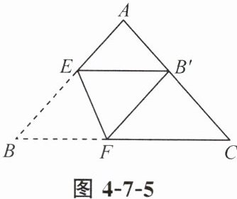 4. 将三角形纸片$ABC$按如图 4 - 7 - 5 所示的方式折叠,使点$B落在边AC$上,记为点$B'$,折痕为$EF$.已知$AB = AC = 6$,$BC = 8$,若以点$B'$,$F$,$C为顶点的三角形与\triangle ABC$相似,那么$BF$的长为(
