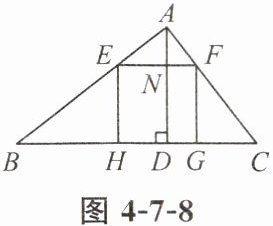 7. 如图 4 - 7 - 8,在$\triangle ABC$中,$BC = 120$,高$AD = 60$,正方形$EFGH一边在BC$上,点$E$,$F分别在AB$,$AC$上,$AD交EF于点N$,求$AN$的长.