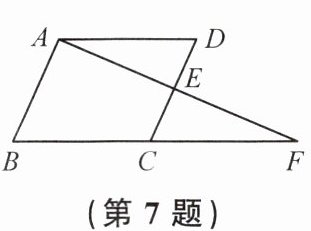 7. 如图,在$□ ABCD$中,点$E是CD$的中点,$AE$,$BC的延长线交于点F$. 若$\triangle ECF$的面积为1,则四边形$ABCE$的面积为