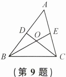 9. 如图,在$\triangle ABC$中,点$D$,$E分别为AB$,$AC$的中点,连接$CD$,$BE$,相交于点$O$. 若$OD = 2$,则$OC = $