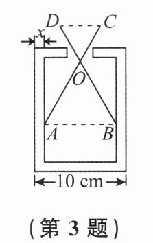 3. 如图,零件的外径为10 cm,用一个交叉卡钳(两条尺长$AC和BD$相等)可测量零件的内孔直径$AB$. 如果$OA:OC = OB:OD = 3$,$CD = 3$ cm,则零件的厚度$x$为(