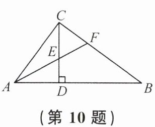 10. 如图,在$\triangle ABC$中,$\angle ACB = 90^{\circ}$,$CD \perp AB$,垂足为点$D$,$AF平分\angle CAB$,交$CD于点E$,交$CB于点F$. 若$AC = 3$,$AB = 5$,则$CE$的长为