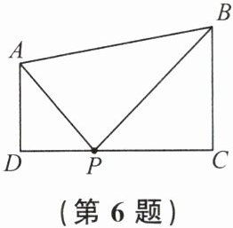 6. 如图,$AD // BC$,$\angle D = 90^{\circ}$,$AD = 3$,$BC = 4$,$DC = 6$,若在边$DC上有点P$,使$\triangle PAD与\triangle PBC$相似,则这样的点$P$有(