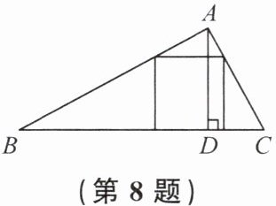8. 如图,$\triangle ABC$是一块锐角三角形的材料,边$BC = 120$ mm,高$AD = 80$ mm,要把它加工成正方形零件,使正方形的一边在$BC$上,其余两个顶点分别在$AB$,$AC$上,这个正方形零件的边长是