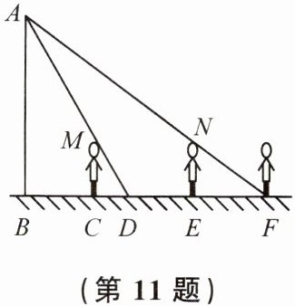 11.(本题14分)如图,王华晚上从路灯$A下的B处走到C$处时,测得影子$CD$的长为1 m,继续往前走3 m到达$E$处时,测得影子的长为2 m. 已知王华的身高为1.5 m.