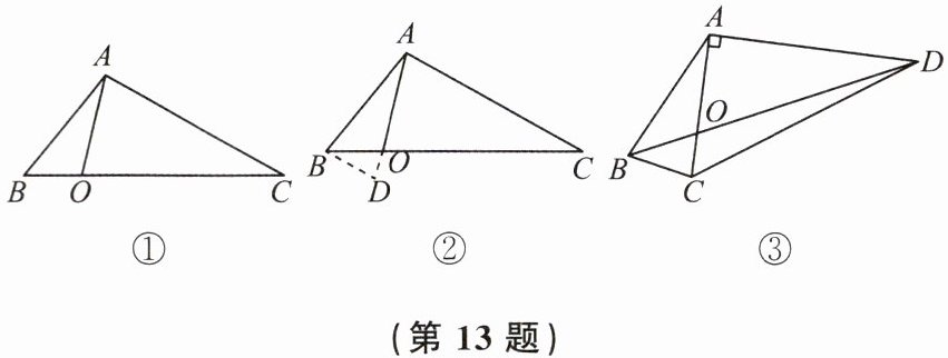 经过社团成员讨论发现,过点$B作BD // AC$,交$AO的延长线于点D$,通过构造$\triangle ABD$就可以解决问题(如图②).
