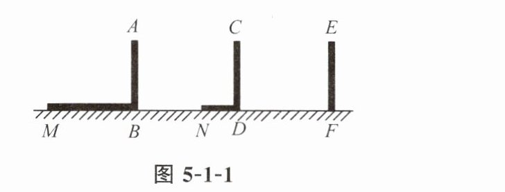 2. 如图 5-1-1,AB,CD,EF 是与路灯在同一直线上的三个等高的标杆. 已知 AB,CD 在灯光下的影子分别为 BM,DN,请在图中作出 EF 的影子.