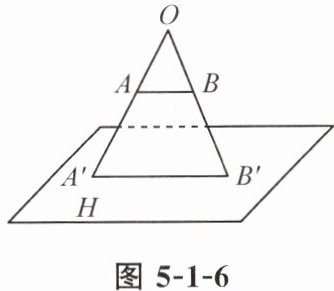 8. 如图 5-1-6,点 O 为投影中心,长度为 1 的线段 AB 平行于它在平面 H 内的投影 A'B',投影 A'B'的长度为 3,且点 O 到直线 AB 的距离为 1.5,那么直线 AB 与直线 A'B'的距离是多少?