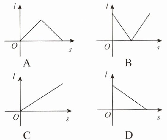 3. 如图 5-1-3,某小区内有一条笔直的小路,路的旁边有一盏路灯,晚上小红从 A 处走到 B 处. 表示她在灯光照射下的影长 l 与行走的路程 s 之间关系的大致图象是(