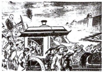 2. 如图描绘了慈禧太后仓皇逃出北京城的场景。当时慈禧出逃是由于(