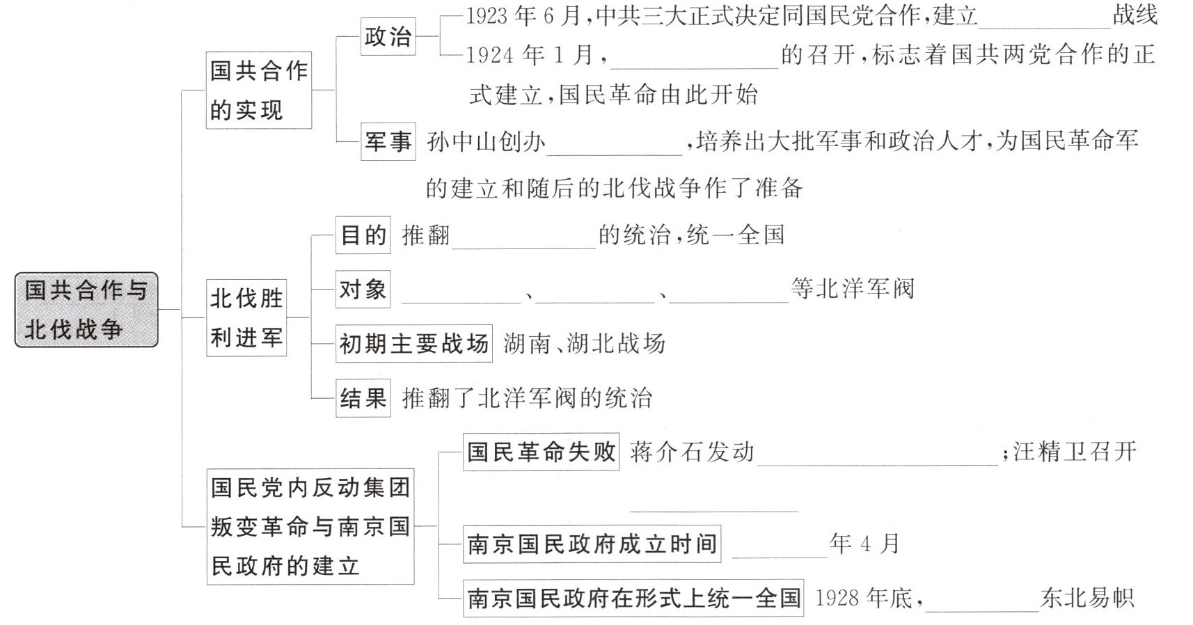 新课标要求:了解第一次国共合作和北伐战争等国民革命的主要内容;知道南京国民政府的成立及性质。