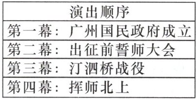 4. 新情境 课本剧 如表是某校排练的一部历史课本剧的演出顺序,据此推断该剧反映的历史事件是(