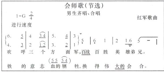 6. [跨学科 音乐]红色歌曲是革命实践的艺术再现。如图《会师歌》歌颂的是 (