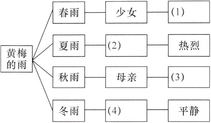 6. 文中四季之雨,“容貌”有别,“性情”各异。请你认真阅读,将下图补充完整。(4 分)