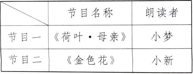 8. 活动中七年级的小梦同学朗诵了冰心的《荷叶·母亲》,接着小新将要朗诵泰戈尔的《金色花》。请你给这两个节目写一段串词。要求:衔接自然,富有感染力。