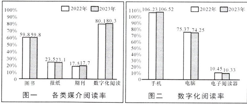 (1)2023年我国国民各类媒介阅读率相比2022年基本持平。