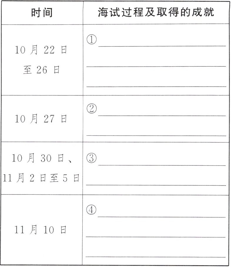 6. 阅读文章,梳理“奋斗者”号海试过程及取得的成就。(4分)
