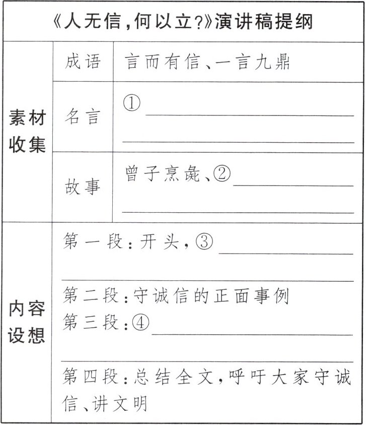 4. 八年级(1)班准备举行以“人无信不立”为主题的演讲比赛,请你参与。