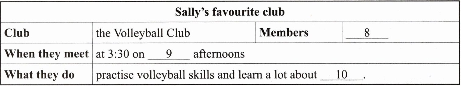 | What they do | practise volleyball skills and learn a lot about ___10___. | | |