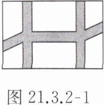 【例 1】为响应市委市政府提出的建设“绿色城市”的号召,某单位准备将院内一块长 30 m,宽 20 m 的长方形空地建成一个矩形花园.要求在花园中修两条纵向平行和一条横向弯折的小道,剩余的地方种植花草,如图 21.3.2 - 1 所示.要使种植花草的面积为$ 532 m^2,$那么小道进出口的宽度应为多少米?(注:所有小道进出口的宽度相等,且每段小道均为平行四边形)