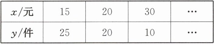(1)求出日销售量 $ y $(单位:件)与销售单价 $ x $(单位:元)的函数关系式.