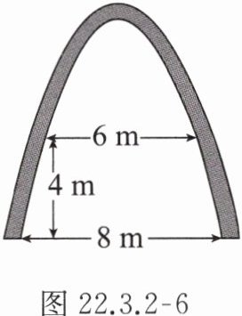 3.某大学的校门是一抛物线形的水泥建筑物(如图22.3.2-6所示),大门的宽度为$8\ m$,两侧距地面$4\ m$高处各有一个挂校名横匾用的铁环,两铁环的水平距离为$6\ m$,则校门的高度约为(精确到$0.1\ m$,水泥建筑物厚度忽略不计)(