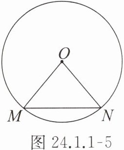 2. 如图24.1.1-5所示,MN为⊙O的弦,∠M= 50°,则∠MON= (