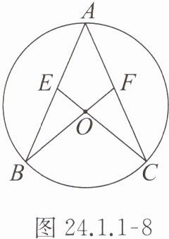 7. 如图24.1.1-8,AB,AC为⊙O的弦,连接CO,BO并延长分别交弦AB,AC于点E,F,∠B= ∠C.