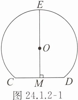 【例 1】如图 24.1.2 - 1 所示,M 是 CD 的中点,EM⊥CD,若 CD = 4,EM = 8,则$\overset{\frown}{CED}$所在圆的半径为