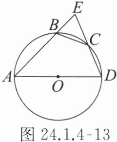 9.如图24.1.4-13,四边形ABCD内接于⊙O,AD是⊙O的直径,C是$\widehat{BD}$的中点,AB的延长线和DC的延长线交于⊙O外一点E.求证:BC= EC.