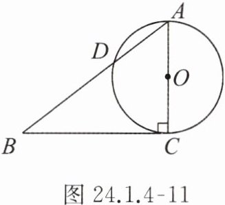 7.如图24.1.4-11,已知Rt△ABC的两条直角边AC,BC的长分别为3 cm,4 cm,以AC为直径作圆与斜边AB交于点D,求AD的长.