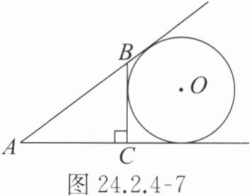 3. 如图 24.2.4 - 7,$ \odot O $ 与 $ \triangle ABC $ 中 $ AB $,$ AC $ 的延长线及 $ BC $ 边相切,且 $ \angle ACB = 90^{\circ} $,$ \angle A $,$ \angle ABC $,$ \angle ACB $ 所对的边长依次为 $ 3 $,$ 4 $,$ 5 $,则 $ \odot O $ 的半径是